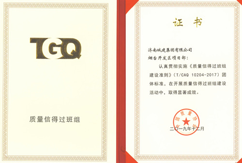 集團煙臺開發區項目部榮獲中國質量協會“質量信得過班組”